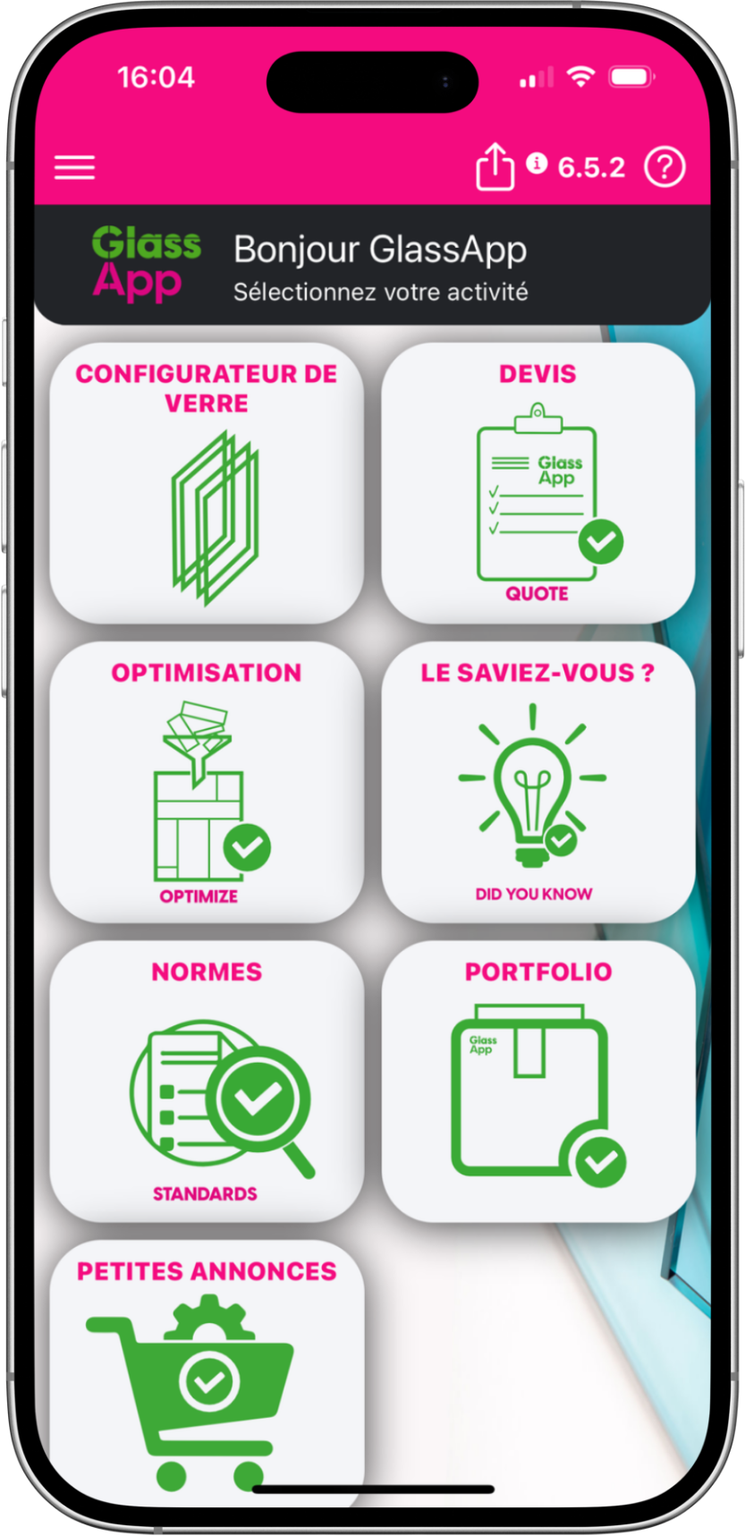 Que vous travaillez dans la fabrication du verre, le traitement du verre, le verre architectural ou fournisseur de verre, GlassApp vous accompagne au quotidien avec des outils innovants pour optimiser la découpe, gérer vos devis, suivre vos projets et faciliter la communication avec vos partenaires.